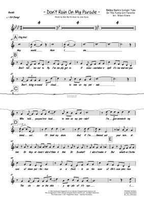 Don't Rain On My Parade' is immediately associated with the original 'Funny Girl', Barabara Streisand.  The Merrill and Styne composition certainly put Babs on the map, but this 1966 rendition from crooner Bobby Darin certainly put a new tilt on the Broadway classic.  With a Big Band flare and a great swing feel, Darin's take on 'Parade' is one of the most loved cover version.  This chart has been professionally scored for 4 Horns (Trumpet, Tenor & Bari Sax. Trombone), 4 Rhythm (Guitar, Bass, Drums, Keyboard) and Vocals by Shaun Evans.  It Is presented as part of the PepperHorn Collections series from PepperHorn Music.