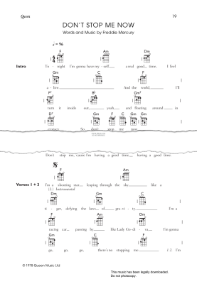 Don't Stop Me Now, as recorded by Queen. Arranged for voice with ukulele chords in digital sheet music format.