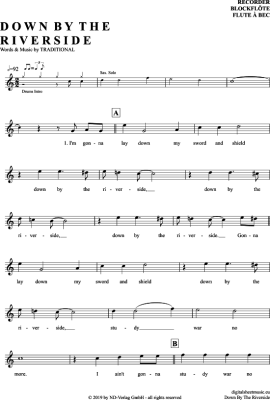 Down By The Riverside - Sheet Music for recorder Traditional
