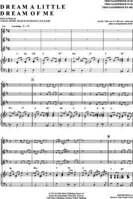Dream a little dream of me (Saxophon Trio AAA(T) - Sheet Music for + piano The Mamas and The Papas