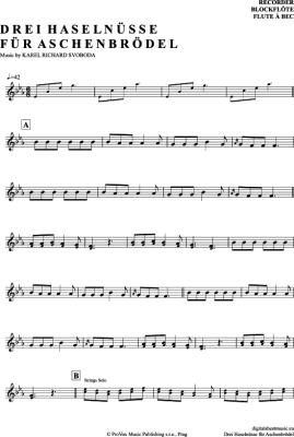 Drei Haselnüsse Für Aschenbrödel - Sheet Music for recorder Karel Svoboda