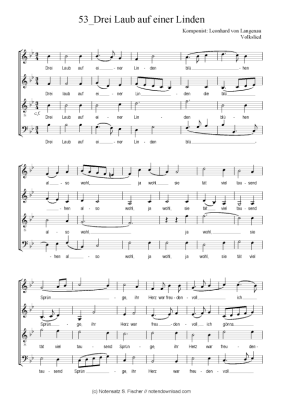 Drei Laub auf einer Linden - Sheet Music for mixed choir Leonhard von Langenau Volkslied