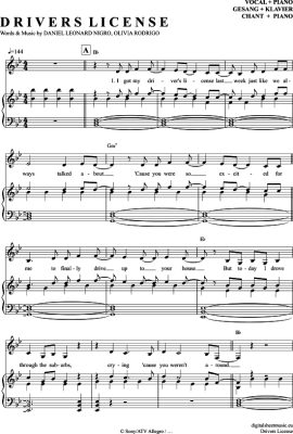 Drivers License - Sheet Music for Piano and Voice Olivia Rodrigo