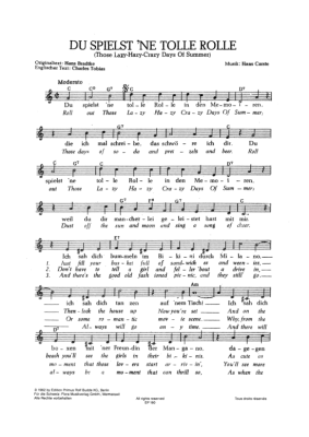 Du spielst ne tolle Rolle - Sheet Music for vocals + chords Willy Hagara