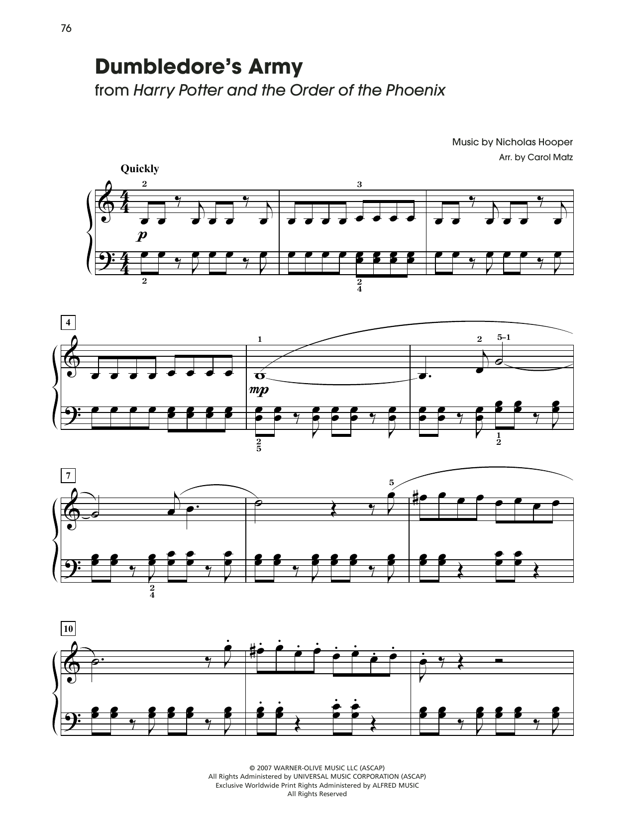 Dumbledore's Army (from Harry Potter) (arr. Carol Matz) (Big Note Piano)