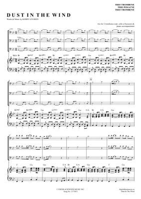 Dust In The Wind - Sheet Music for Trombone Trio + Piano Kansas
