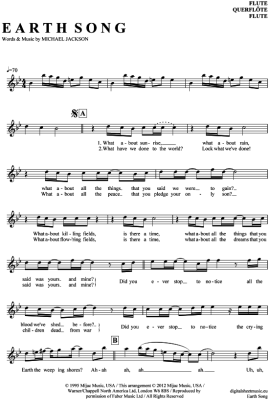 Earth Song - Sheet Music for transverse flute Michael Jackson