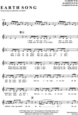 Earth Song - Sheet Music for Clarinet in B-flat Michael Jackson