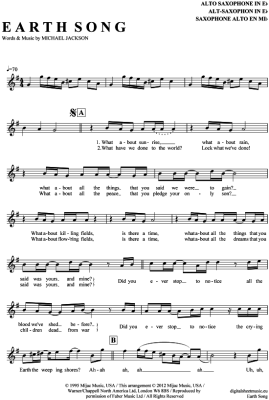 Earth Song - Sheet Music for Alto Saxophone Michael Jackson