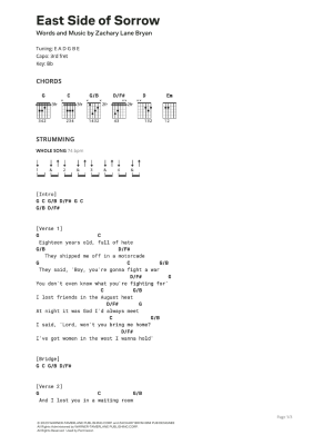 East Side Of Sorrow - Sheet Music for Zach Bryan