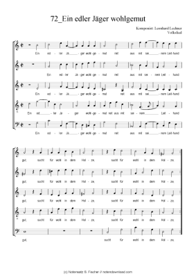 Ein edler Jäger wohlgemut - Sheet Music for mixed choir Leonhard Lechner Volkslied