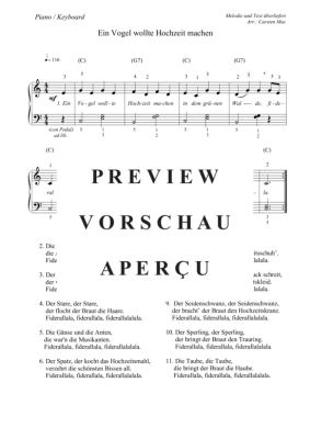 Ein Vogel wollte Hochzeit machen Vers.2 in C (Piano / Keyboard) - Sheet Music for Piano Easy Traditional