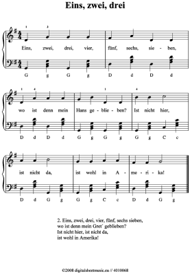 Eins, zwei, drei - Sheet Music for accordion Kinderlied