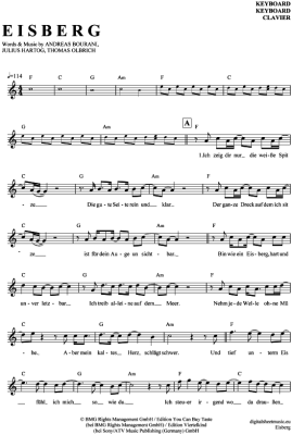 Eisberg - Sheet Music for Keyboard Andreas Bourani