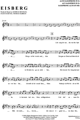 Eisberg - Sheet Music for Alto Saxophone Andreas Bourani