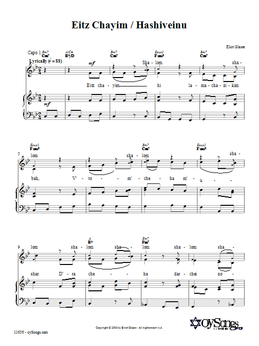 Eitz Chayim / Hashiveinu Piano, Vocal & Guitar Chords (Right-Hand Melody)