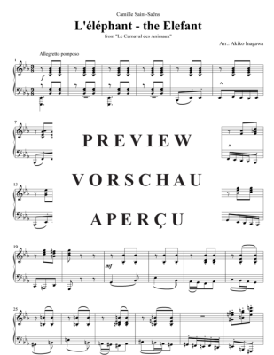 Elefant (aus: Karneval der Tiere) - Sheet Music for Piano Solo Camille Saint-Saëns (arr. A. Inagawa)