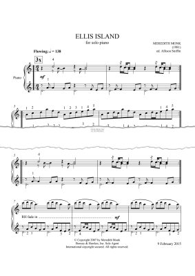 Ellis Island - Sheet Music for Meredith Monk