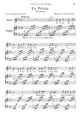 En prière - Sheet Music for Medium Voice and Piano Gabriel Fauré