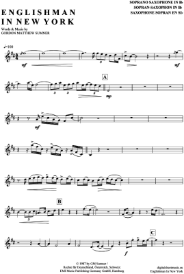 Englishman in New York - Originalstimme - Sheet Music for Soprano Saxophone Sting