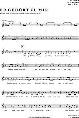 Er Gehört Zu Mir - Sheet Music for recorder Marianne Rosenberg