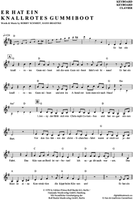 Er hat ein knallrotes Gummiboot - Sheet Music for Keyboard Wencke Myhre