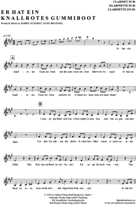 Er hat ein knallrotes Gummiboot - Sheet Music for Clarinet in B-flat Wencke Myhre