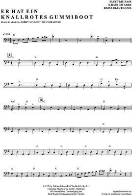 Er hat ein knallrotes Gummiboot - Sheet Music for Bass Guitar Wencke Myhre