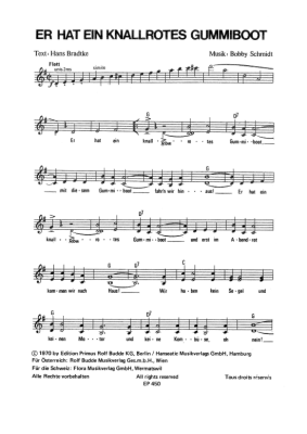 Er hat ein knallrotes Gummiboot - Sheet Music for vocals + chords Wencke Myhre