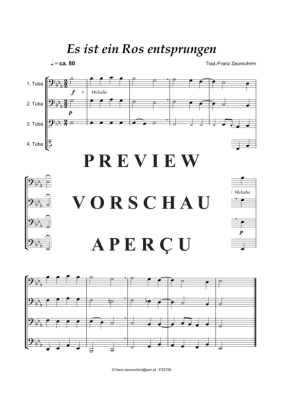 Es ist ein Ros entsprungen - Sheet Music for Tuba Quartet Traditional (Zaunschirm)