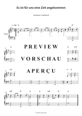 Es ist für uns eine Zeit angekommen - Sheet Music for Piano Solo traditional