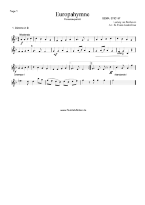 Europahymne - Sheet Music for from Ode to Joy - Trombone Quartet Ludwig van Beethoven