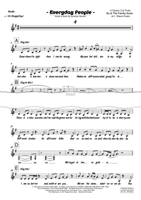 When one thinks of chants for change or calls to arms perhaps the first tone in your head is a march, a fanfare -- something powerful and engaging.  But in 1968 Sly Stone turned the protest song on it's head with the perfectly poised 'Everyday People'.  It's understated message of peace and equality struck a chord with the public and the charts -- it was Sly & The Family Stone's first #1 single on the US Soul Charts.  This groovy bit of peace and love has been professionally arranged for 4 Horns (Trumpet I & II, Tenor Sax, Trombone), 4 Rhythm (Drums, Guitar, Bass, Keyboards), Vocals & Background Vocals by Shaun Evans.  It is presented as part of the PepperHorn Collections series from PepperHorn Music.