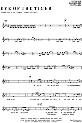 Eye of the tiger - Sheet Music for recorder Survivor