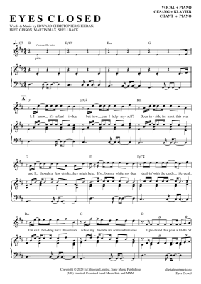 Eyes Closed - Sheet Music for Piano and Voice Ed Sheeran