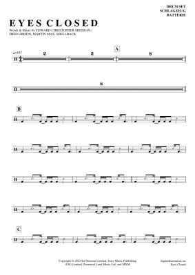 Eyes Closed - Sheet Music for Drums Ed Sheeran