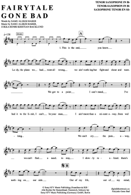 Fairytale Gone Bad - Sheet Music for Tenor Saxophone Sunrise Avenue