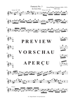 Fantasie Nr. 3 für Solo Flöte TWV 40 : 4 - Sheet Music for flute, violin Georg Philipp Telemann