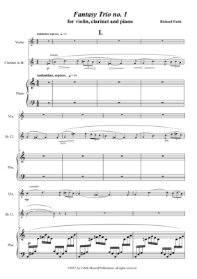 Fantasy Trio no. 1 - Sheet Music for clarinet in Bb, violin + piano Richard Faith