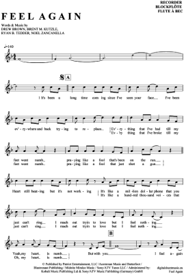 Feel again - Sheet Music for recorder OneRepublic
