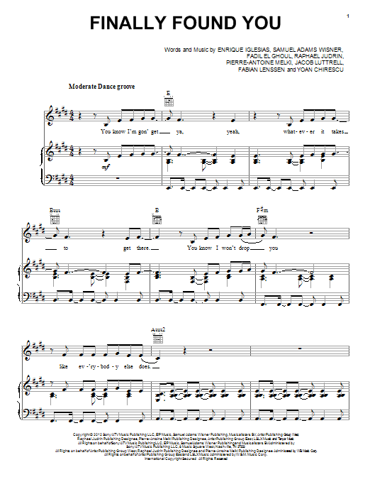 Finally Found You (Piano, Vocal & Guitar Chords (Right-Hand Melody))