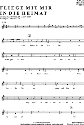 Fliege Mit Mir In Die Heimat - Sheet Music for violin Troglauer Buam