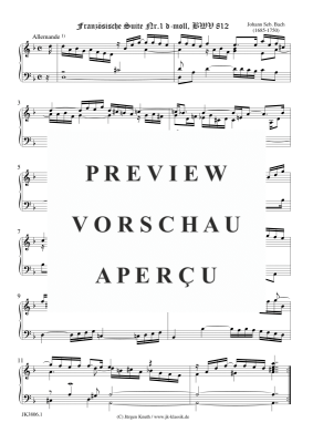 Französische Suite Nr.1 d-moll, BWV 812 - Sheet Music for Piano Solo Johann Sebastian Bach