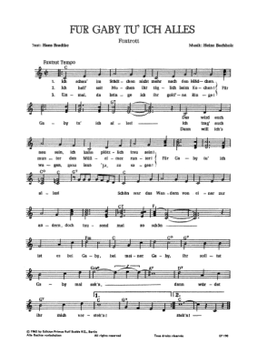 Für Gaby tu ich alles - Sheet Music for vocals + chords Gerd Böttcher