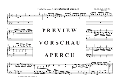 Fughetta super: Gottes Sohn ist kommen BWV 703 - Sheet Music for Klavier/Cembalo/Orgel Solo Johann Sebastian Bach