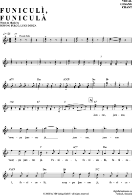 Funiculi Funicula - Sheet Music for vocals Traditional