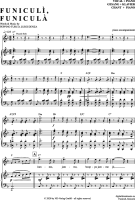 Funiculi Funicula - Sheet Music for Voice with Piano Accompaniment Traditional