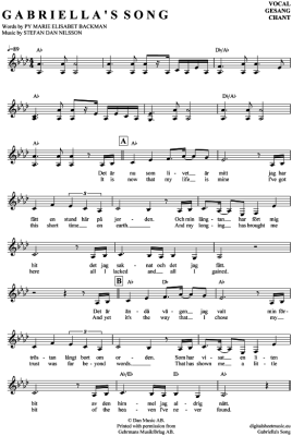 Vocal Sheet Music "Gabriellas Song" – A Solemn Film Ballad for Voice