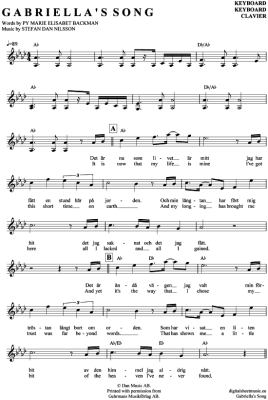 A short demo audio preview is available to listen to – not the complete piece, but more than enough to get a feel for it. When you purchase the sheet music, you also receive a playback track available with or without the melody – ideal for working on tempo and phrasing. The "Gabriellas Song" sheet music is available immediately after download. 100% licensed – ready to play legally, right away.