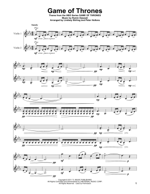 Game Of Thrones - Main Title - Sheet Music for Lindsey Stirling